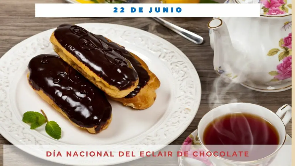 El Día Nacional del Eclair de Chocolate, que se celebra anualmente el 22 de junio, reconoce un delicioso pastelito relleno de crema y cubierto de suave chocolate.