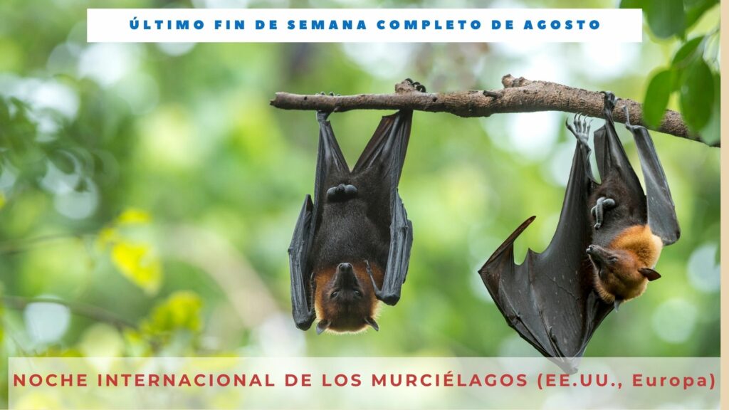 La Noche Internacional de los Murciélagos nos anima a aprender más sobre esta criatura mayoritariamente nocturna. Tiene lugar cada año durante el último fin de semana completo de agosto. La Noche de los Murciélagos comenzó en 1997 y treinta países celebran este evento para informar al público sobre las necesidades y beneficios de los murciélagos en la naturaleza.
